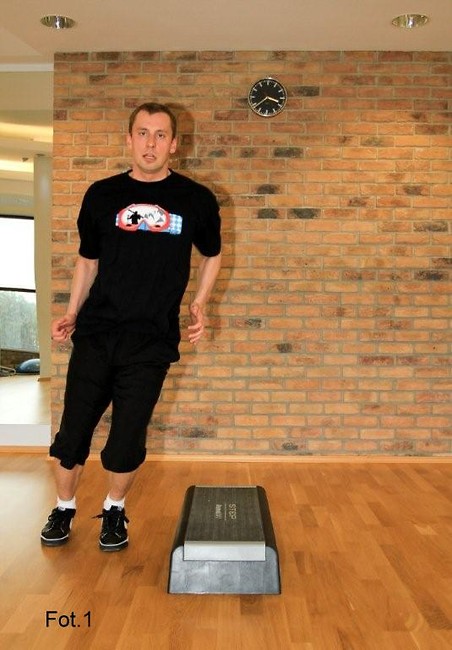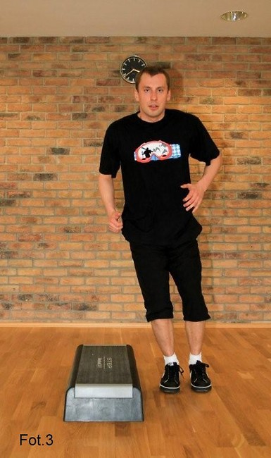 • Bieg w miejscu z dynamicznym unoszeniem kolan dotykając prawie klatki piersiowej, z dodatkowym klaśnięciem w dłonie pod kolanem. Wykonujemy do zmęczenia, odpoczywamy do uspokojenia oddechu i powtarzamy 5 razy.