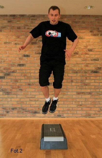 Przykład ćwiczenia: wybijając się z obu nóg wykonujemy przeskoki bokiem przez płaską przeszkodę, lądując na obydwu nogach.